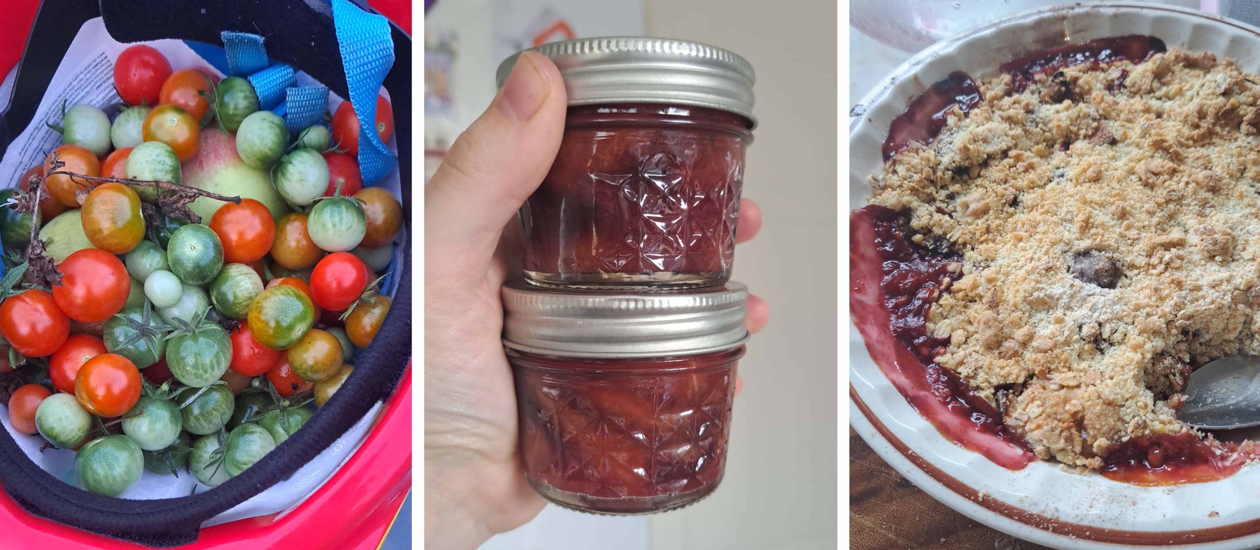 Plot B9: Natasha’s crash helmet tomatoes and yummy plum compote and apple crumble: